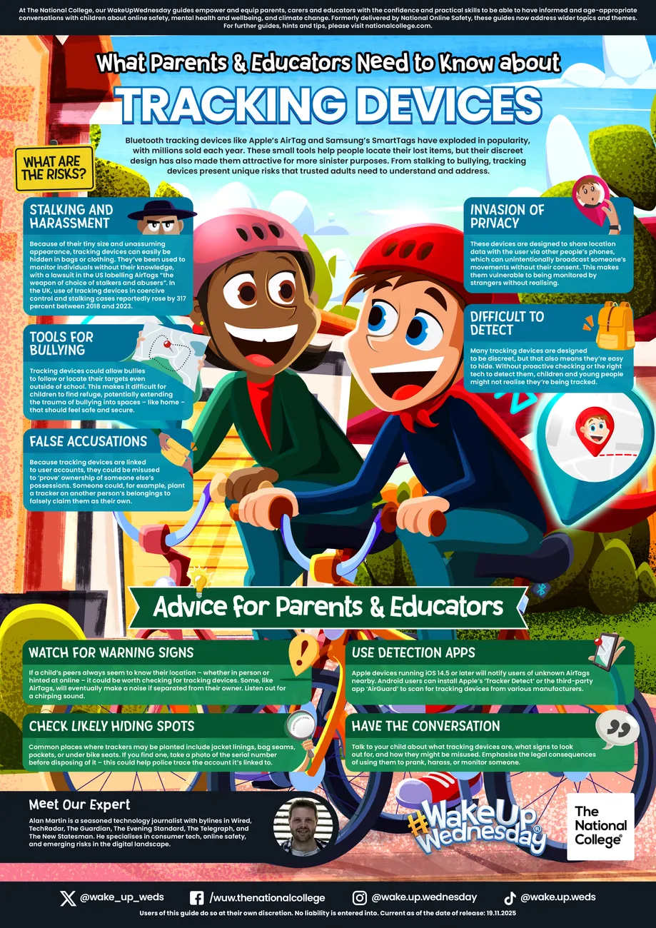 This guide examines the growing popularity of Bluetooth trackers, the most common ways they’re being misused, and how to spot signs that a child may be affected. With practical tips on detecting hidden devices, using the right apps, and starting important conversations, it’s a vital read for parents, carers and educators looking to stay ahead of a fast-moving issue.